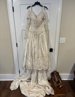 Vintage 80s HelenFreeds Ivory Heavily Beaded Long Sleeve Cathedrel Wedding Gown$300Fayetteville, NC