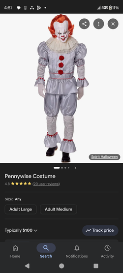 Adult size Pennywise Halloween Costume$30Vista, CA