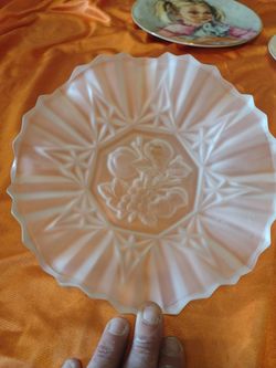 Vintage Frosted Satin Glass Ruffled Bowl - Embossed Fruit Pattern$10Oklahoma City, OK