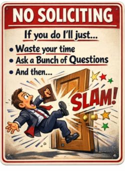 5x8" Funny No Soliciting Sticker$5Allegan, MI