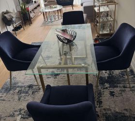 Modern Glass Dining Table Set – Gold Base + 4 Navy Velvet Chairs$300Chicago, IL