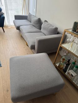 Modern Gray Sectional Sofa with Gold Legs + Ottoman$300Chicago, IL