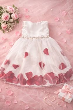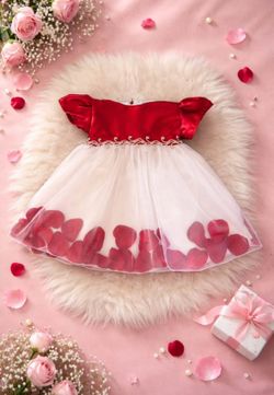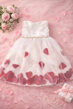 Vestido elegante para niñas blanco con pétalos rojos .Ideal para fiestas y sesiones de fotos$0Round Rock, TX