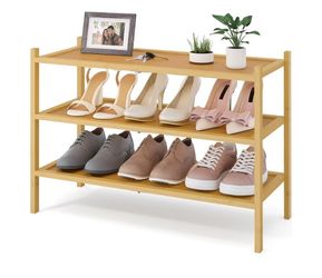 Bamboo Shoe Rack, 3 Tier Shoe Organizer for Entryway & Closet, Stackable Free Standing Storage Shelf for Shoes, Bags & Plants, Natural$20Union City, GA