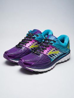 Brooks Glycerin 14 women's running shoes. This specific colorway features a vibrant combination of purple, teal, and blue with metallic overlays.$32Schaumburg, IL