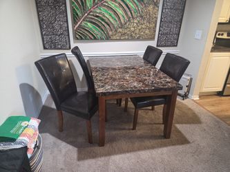 Faux Marble Table With 4 Leather Chairs, 1 Damaged On Seat$200Palm Harbor, FL