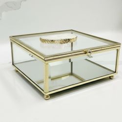 Glass Jewelry Box Gold Trim Quartz Crystal Decor$10Columbus, OH