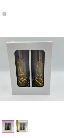 New Bride Groom Champagne Flutes Wedding Toast Glass Set Gold Script$15Columbus, OH