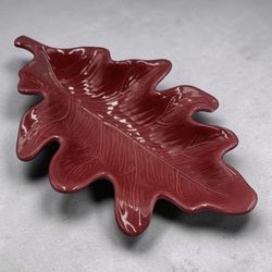 Dark Red Ceramic Oak Leaf Dish Decor Serving 14”$12Columbus, OH
