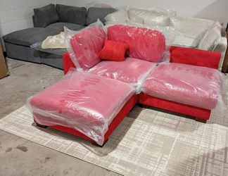 Red corduroy 2 seater with ottoman.$250Arlington, TX