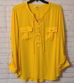 Peter Nygard Medium Yellow Blouse – Silver Buttons & Front Pockets$20Robinson, TX