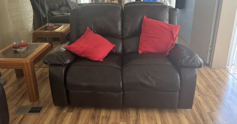 Black Pleather Double Reclining Loveseat + 2 Red Pillows$220Hollywood, FL