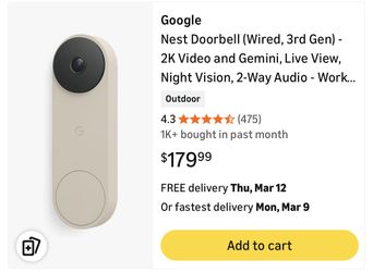 Google Nest Doorbell (Wired, 3rd Gen)$80Greenville, SC