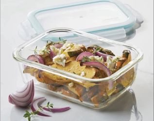 Glass food storage container with a blue gasket lid. $5Brooklyn, NY