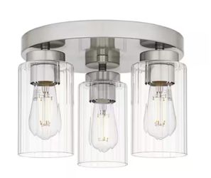 Delphi 13.25 in. 3-Light Brushed Nickel Contemporary Flush Mount with Clear Ribbed Glass Shades$40Schererville, IN