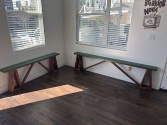 Pair of custom green top wood benches (5’x7” & 7’x5”) $60Larkfield-wikiup, CA