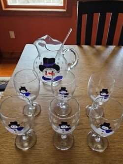 Handpainted snowman pitcher and glasses set$50Lehman Township, PA