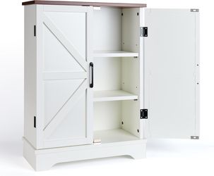 White Farmhouse Storage Cabinet with Barn Doors – Freestanding Floor Cabinet with Adjustable Shelf for Bathroom, Living Room, Kitchen$88Hacienda Heights, CA