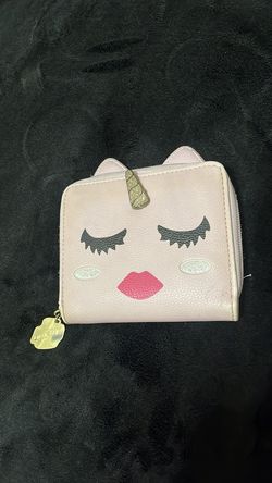 Betsey Johnson unicorn wallet in blush, featuring a gold glitter horn and a lip-shaped zipper pull.$15Edinburg, TX
