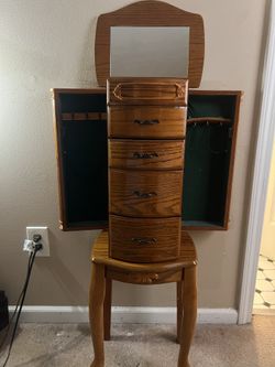 Wooden Jewelry Armoire with Mirror & Storage $25Maryland Heights, MO