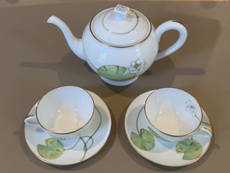 Hermès Nil Gold Trim Porcelain Teapot Set - Teapot + 2 Tea Cups And Saucers$1,100Los Angeles, CA