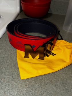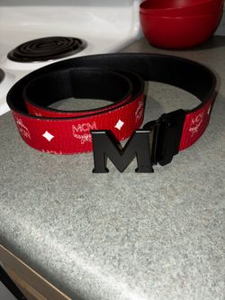 Men’s red Mcm belt with matte black buckle$210West Union, SC