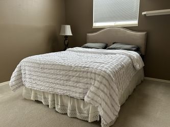 Queen bed with upholstered back rest + mattress + box spring$245Issaquah, WA