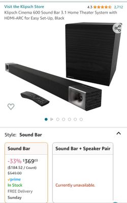 Klipsch Reference 600 Sounbar And Sub$200Chicago, IL