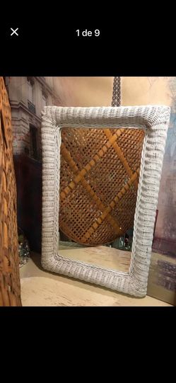 VTG WHITE WICKER WALL MIRROR BOHO MCM 30 X 20$70Henderson, NC