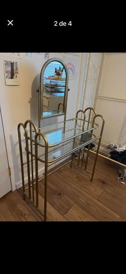 Mid-Century Hollywood Regency Brass & Glass Vanity with Arch Mirror W/Stool$150Henderson, NC