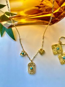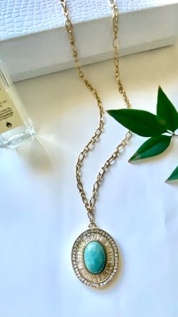 French-Style Light Luxury Vintage-Inspired Necklace with Full Pavé Faux Turquoise Pendant$30Anaheim, CA