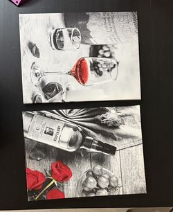 Two canvas art prints featuring a glass of red wine and vibrant red roses.$20Indianapolis, IN