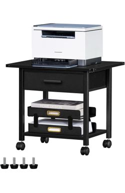 Under Desk Rolling Printer Stand with Drawer, 2-Tier Industrial Mobile Printer Table Desk with Storage Shelf and Steel Frame, Printer Cart Holder with$35Union, NJ