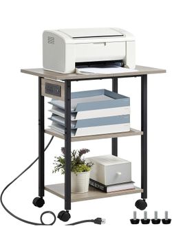 3-Tier Printer Stand with Charging Station, Industrial Mobile Printer Table with Storage Shelf and Steel Frame, Rolling Printer Cart Holder with Locka$35Union, NJ