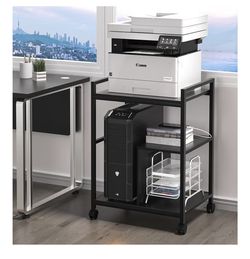 Printer Stand with Charging Station and USB Ports, Large 3-Tier Mobile Printer Table with Storage Shelf, Black Rolling Industrial Printer Cart with Lo$55Union, NJ
