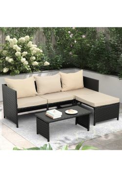 3-Piece Outdoor PE Rattan Furniture Set Patio Black Wicker Conversation Loveseat Sofa Sectional Couch Khaki Cushion brand new in box $199 N108$199Springfield, NJ