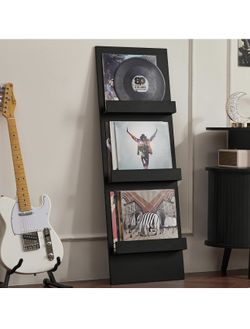 Wall Mount Vinyl Record Holder with 3 Tier Display Shelf, 47.5'' Tall Record Storage Magazine Holder, Book Shelf Holder Holds Up to 15 Vinyls Albums/C$45Union, NJ