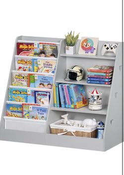 4 Tier Kids Bookshelf and Storage Organizer, Five Layer Sling Children Bookcase, Baby Toddler Wooden Book Shelf, Display Cabinet for Playroom, Bedroom$60Union, NJ