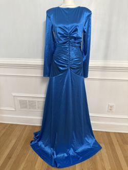 blue satin asymmetrical mermaid dress long sleeve/ New/size L$55Roswell, GA