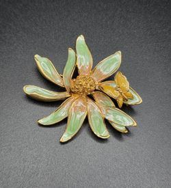 Vintage MJ M Jent Green Enamel Flower with Yellow Butterfly Brooch Pin$30Lacey, WA