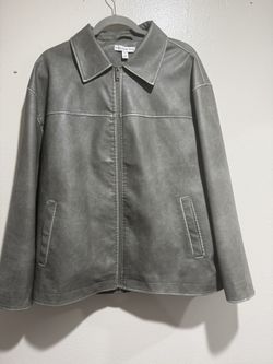 slate gray faux-leather (PU) utility or "shacket" style jacket$78Long Beach, CA