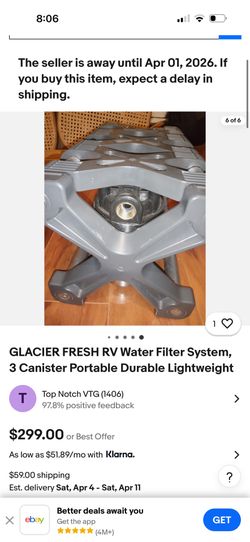 GLACIER FRESH RV Water Filter System, 3 Canister Portable Durable Lightweight$230Montebello, CA