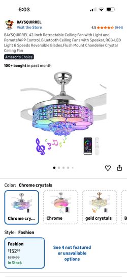 BAYSQUIRREL 42-inch Retractable Ceiling Fan with Light and Remote/APP Control, Bluetooth Ceiling Fan$110Montebello, CA