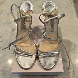 Jimmy Choo Silver Strappy 4” Heels Size 39/8.5$70Delray Beach, FL