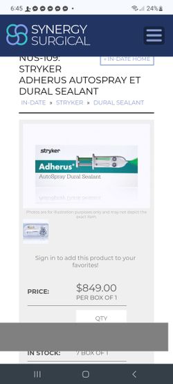 Adherus AutoSpray ET Dural Sealant $400$400Los Angeles, CA