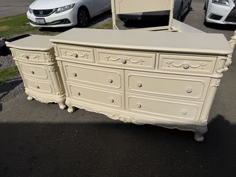 Cinderella Antique white dresser and night stand$250Tacoma, WA