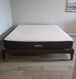 Upholstered Platform Bed Frame With Leesa Oasis Chill Mattress.