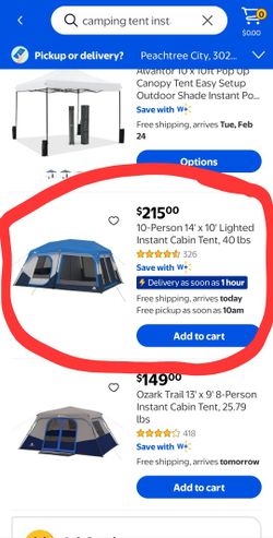 NEW Ozark Trail 10-Person Instant Cabin Tent with LED Lights$165Fayetteville, GA