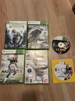 6- Xbox 360 games(Madden 12& 15, Assasins creed,watch dogs, Major league baseball 2k10,L.A.Norie $20Chicago Ridge, IL