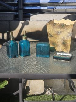 Teal Ribbed Glass Bathroom Set$20Upland, CA